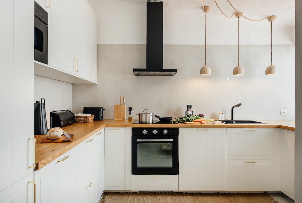 Carobs Villa has a stylish, contemporary design with a playful touch. White rooms are combined with sand-coloured concrete floors and modern furniture, along with natural details such as wooden stools, wicker baskets and woven rugs, creating a bright and warm atmosphere. The holiday home has a practical layout with a spacious living room including a dining table, cosy sitting area by the fireplace for cool evenings and a fully equipped open-plan kitchen. Of the three fine bedrooms, one has an en-suite bathroom. The other two bedrooms, share a bathroom.