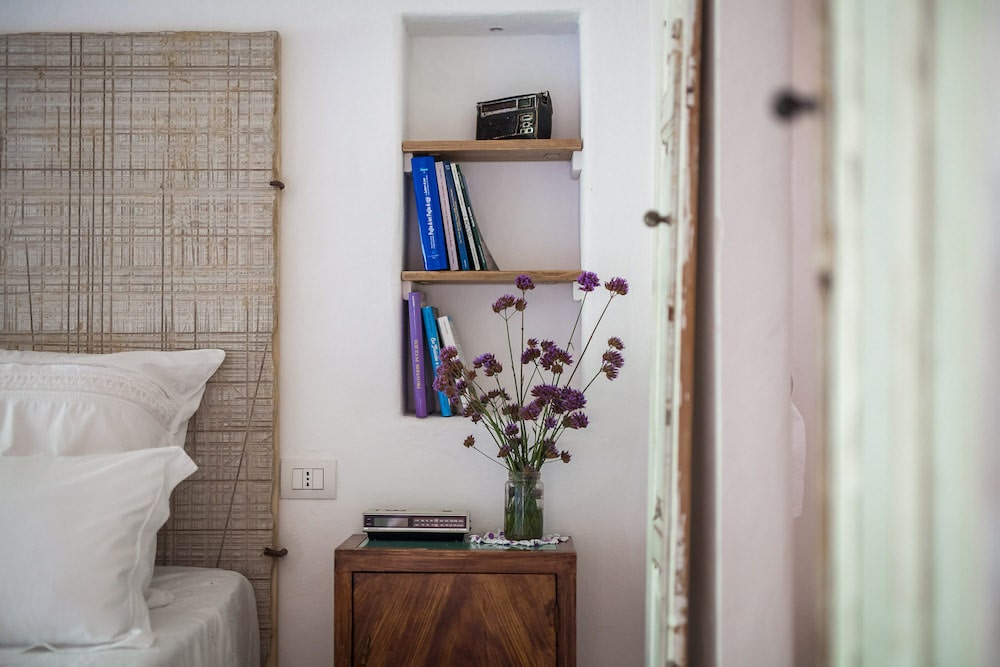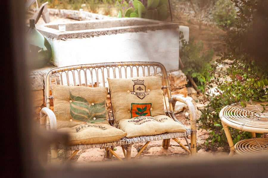 Lamia Grande is a spacious apartment with beautiful vaulted stone ceilings that is fully equipped for 3 people. The entrance of the trulli is in the open living which includes a kitchenette with a gas hob, a dining table for two, and a vintage daybed that serves as a third sleeping place. At the rear, two French doors give direct access to the private terrace. The spacious bedroom has a large double bed and patio doors to a private garden. Two wooden doors open to the beautiful bathroom with a special stone sink, a walk-in shower, and a toilet.