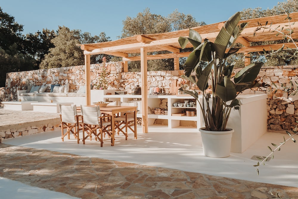 Here you will also experience the real Italian outdoor life. Enjoy a stroll in the private 10.000m2 orchard, read a book in the shade of the majestic olive trees or relax in the plunge pool with massage installation, with the crickets chirping in the background. The outdoor kitchen has everything you need for a perfect 'al fresco' dinner, such as a 'green egg' barbecue and a 5-burner stove. Don't feel like cooking yourself? Within 20 minutes by car you'll arrive in the town of Ostuni and Cisternino, both famous for their white buildings, historic center and delicious restaurants.