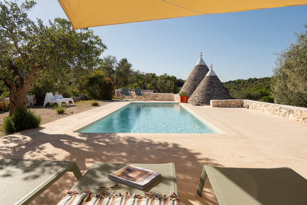 An unpaved road leads to the top of a hill where Trullo Ventolato is situated. Bordered by typical stone walls that characterize the Puglia region and dotted with majestic olive trees and fig plants, provides the large garden several areas to relax, such as: