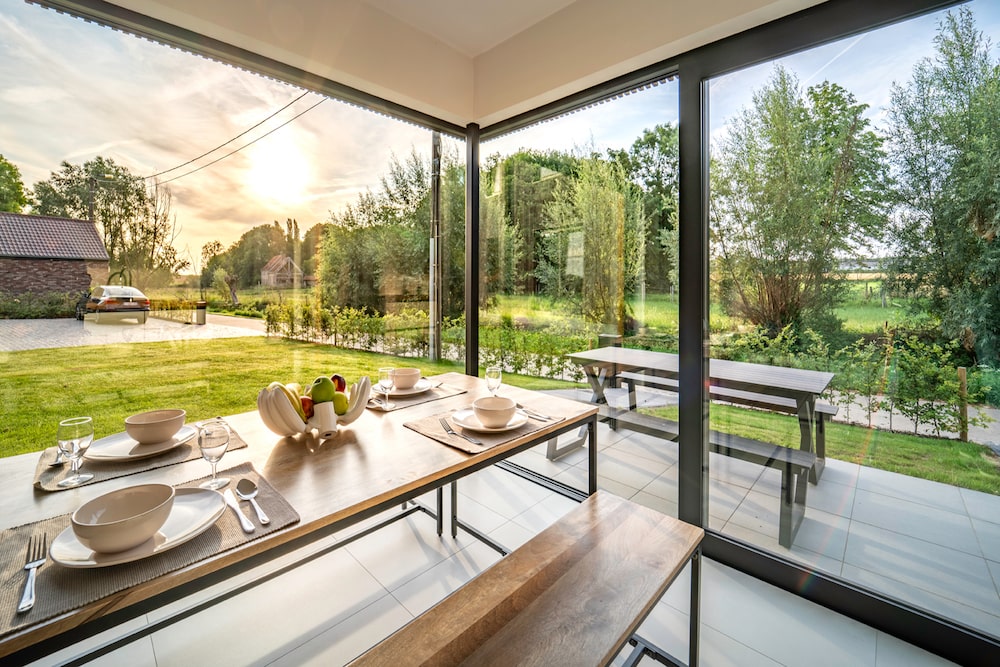 Velpe55 is an attractive holiday home with contemporary architecture and panoramic views of the countryside. It is set in a very quiet location and walking and cycling routes start directly in front of the house. Comfortably equipped for 6 people, this is an ideal place for a family or two couples who want to enjoy peace, love walking, cycling, or a city visit to one of the beautiful Belgian cities nearby.