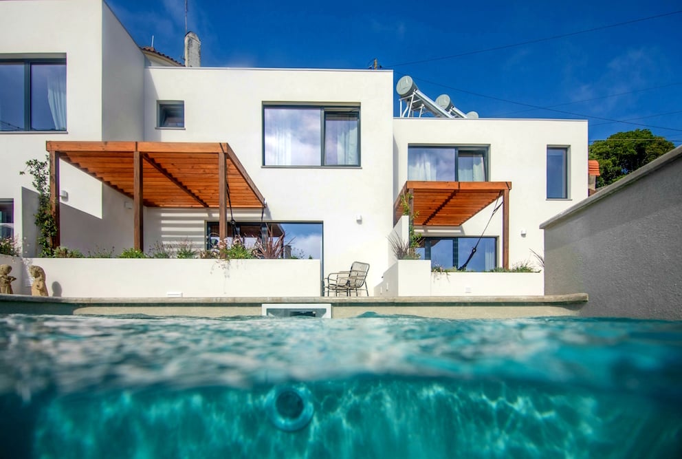 A few minutes' drive from various beaches, the new VilAdraga is located on the edge of a village at the end of a street with a wide view of the green hills and the sea in the distance. You can walk into nature in no time! For example, walk to Cabo da Roca in an hour, taking a dip in the sea from a hidden beach along the way. Sintra is only 20 minutes drive and Lisbon 40 minutes.