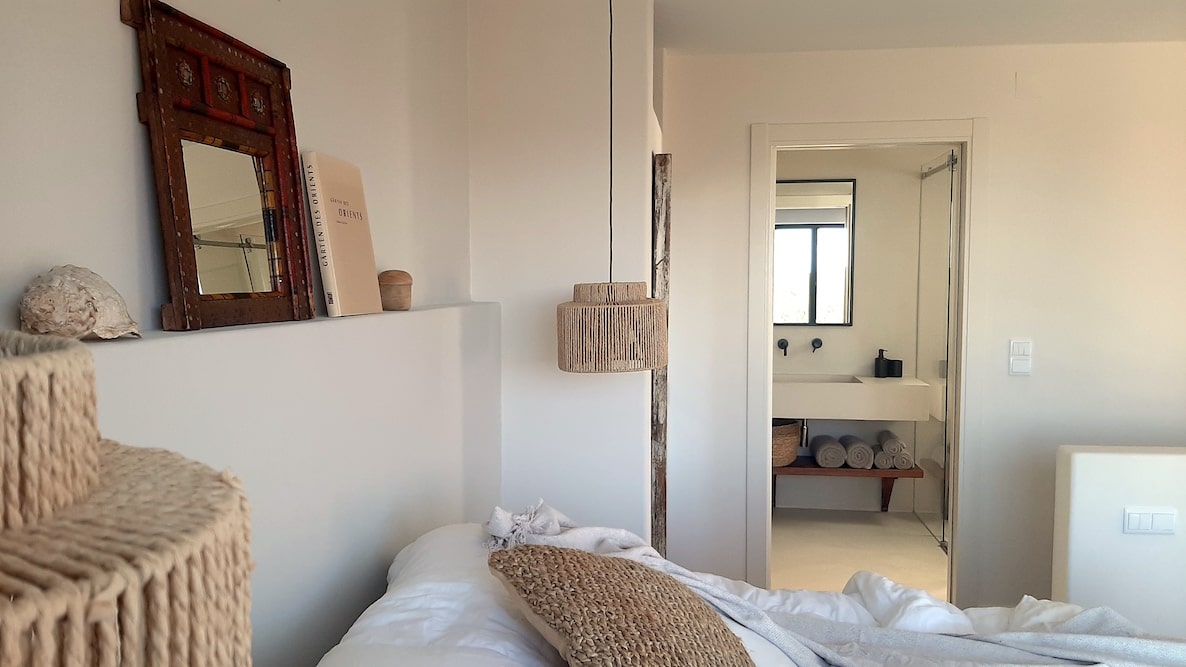 The pleasant, neutral interior has beautiful details, such as the Oriental rugs, wooden Indian doors, wicker baskets, Marshall bluetooth box and the finish is of high quality overall. There are games ready and books about the environment/lifestyle. On the top floor are the bedroom(s)/bathroom with comfortable beds with topper, beautiful bed linen and care products in the bathroom.