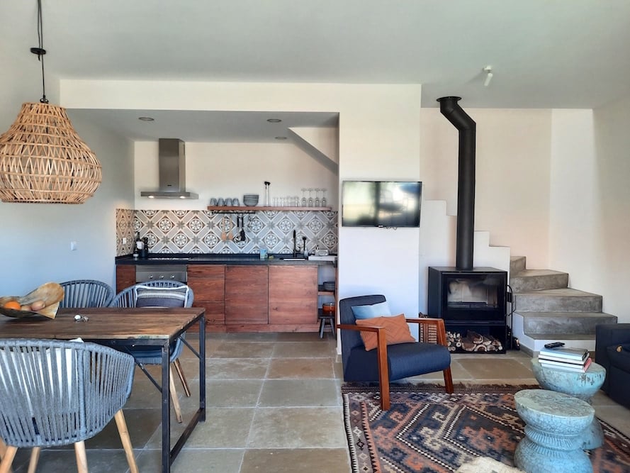 An attractive holiday spot with three tasteful and luxuriously furnished apartments. Each with its own private terrace with hammock and dining table, a shared plunge pool with outdoor shower in the beautifully landscaped, fenced garden. In each apartment you will find a well-equipped (open) kitchen with, among other things, Nespresso, milk frother, oven, beautiful crockery, olive oil. The living room has a (sleeping) sofa with a wood stove, smart television and dining table.