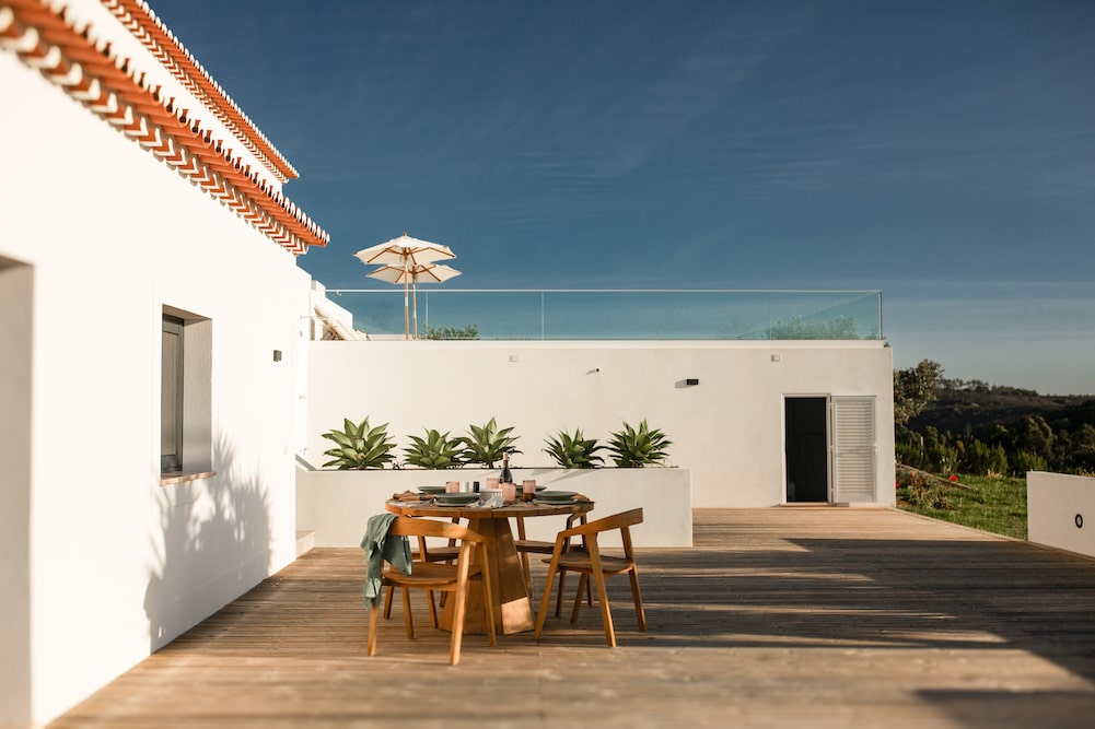 - Second wooden deck terrace with a round table (outside the souterrain area)