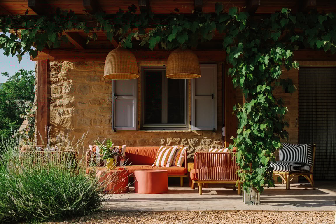 - Large covered terrace with a dining table