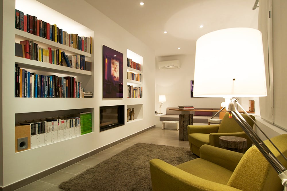 - A smaller living room doubles as a cozy library or study. The day bed in this room could be used as a bed for a seventh guest.