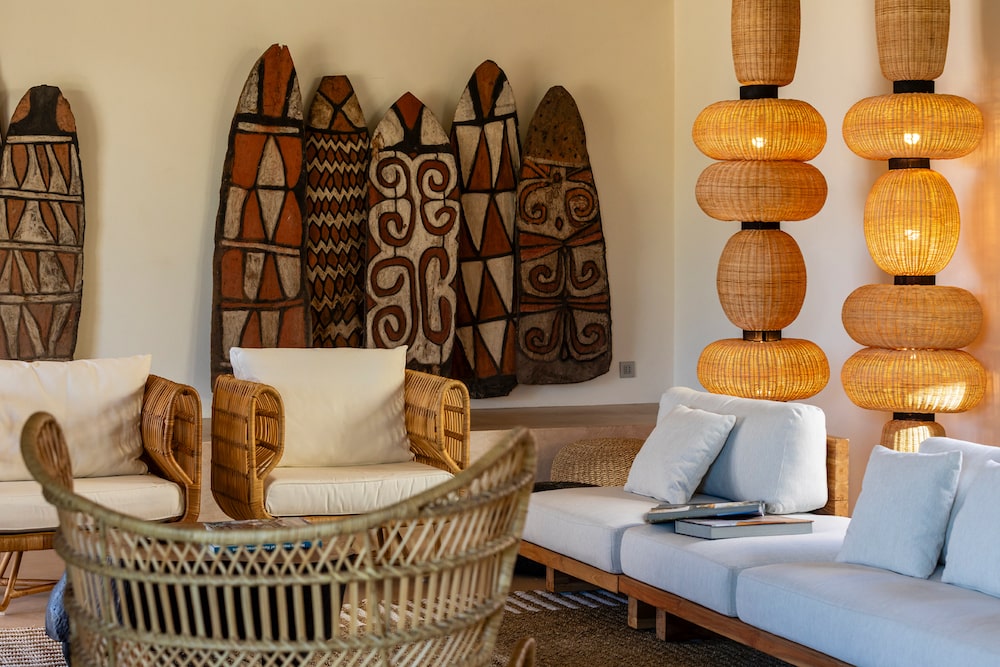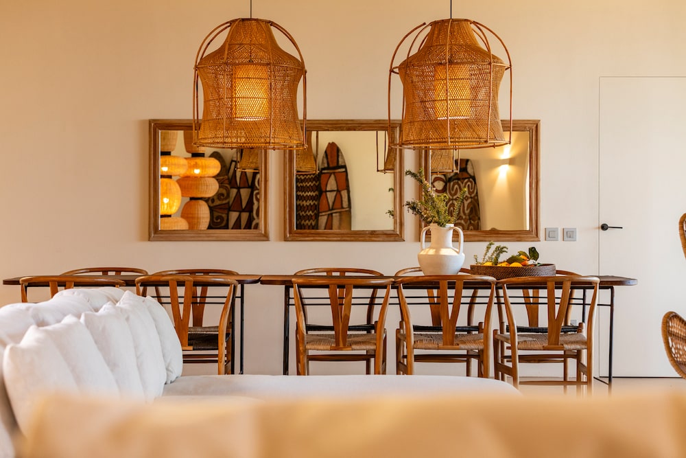 The architecture of Villa Calamare is striking: minimalist yet warm, open, elegant, and crafted with attention to every detail. Concrete floors, custom woodwork, woven lamps, and soft sandy hues create a Mediterranean soul with a touch of Balinese calm.