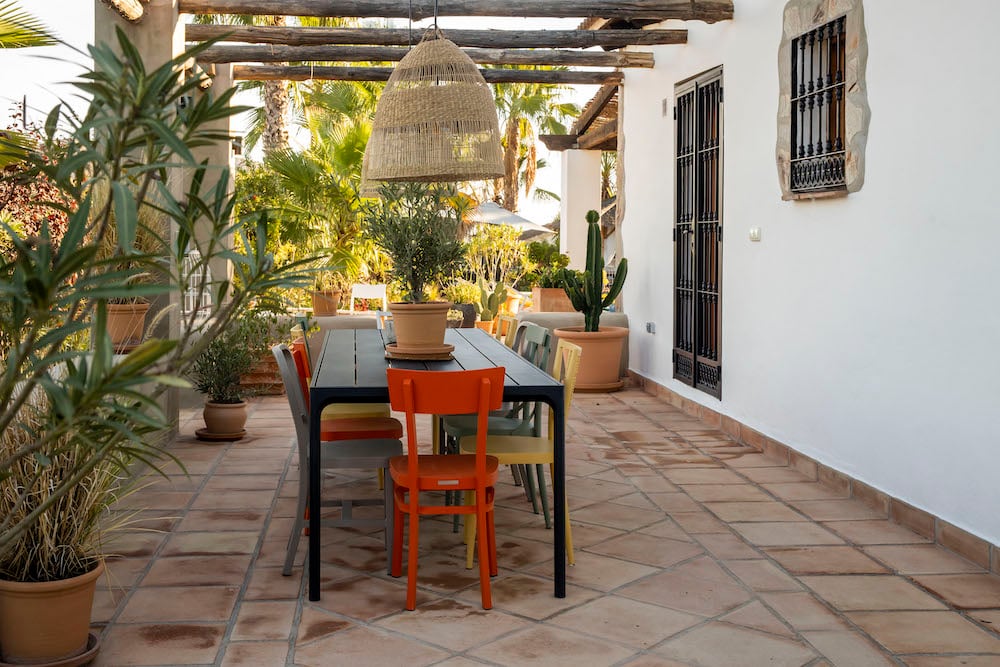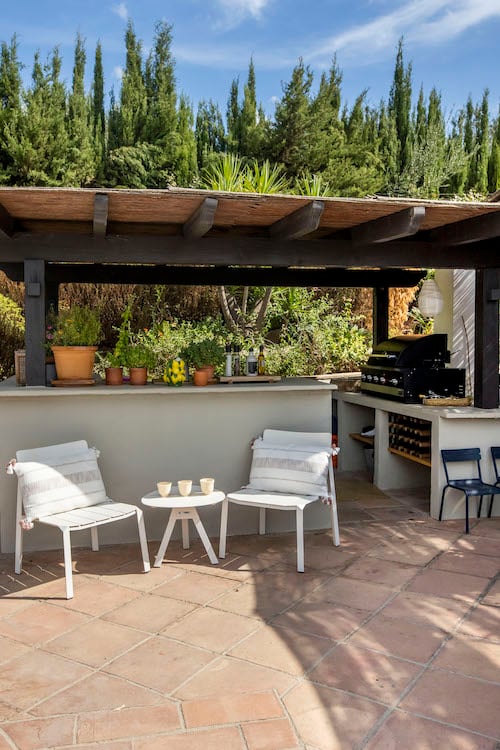 The garden runs all the way around the villa and terraces and seating areas have been made everywhere, so that you can enjoy shade and sun in every season.