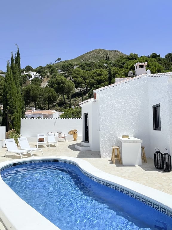 Villa Emma is tucked away in the hills of Andalusia, just outside the whitewashed mountain village of Cómpeta. Here, you’ll enjoy complete peace and privacy, with endless views across rolling hills and, in the distance, the shimmering Mediterranean Sea. Recently renovated from top to bottom, the villa offers a luxurious and comfortable stay, with modern amenities and a naturally serene mood. A place to truly disconnect — without being far from anything.