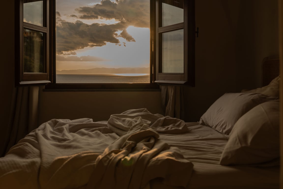 - Bedroom with a double bed (160cm x 200cm) and a private terrace offering breathtaking seaviews.