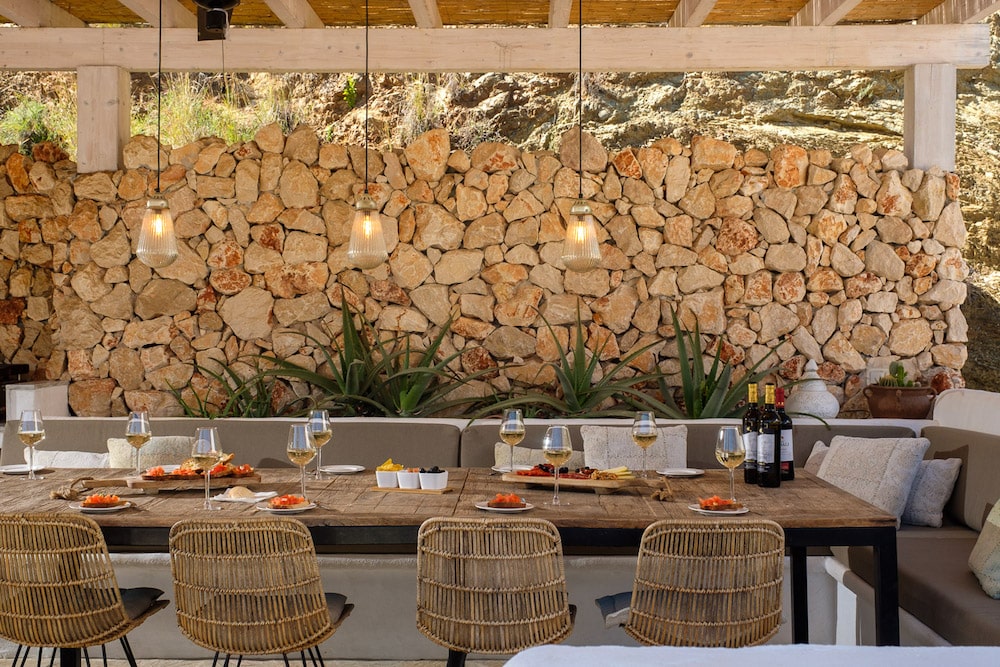 - A truly exceptional outdoor (covered) kitchen with BBQ, wood fired oven, small fridge, a built-in lounge area to both sides and a large dining table