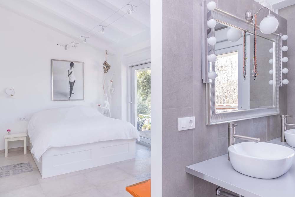 8m2 bedroom with double bed (160x200) located in Casa Krokiet. Equipped with bathroom and private terrace under the almond trees.