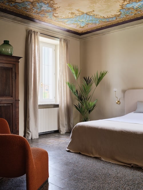 - The first master bedroom is located on the ground floor and has a double box-spring bed (180x200cm). From the bed, you can admire the fantastic Fresco ceiling paintings.