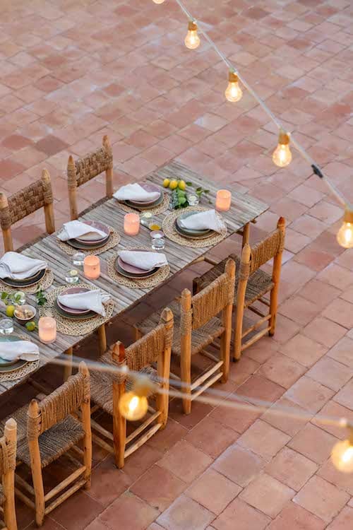 - A second terrace (a few steps lower than the pool) with a lounge corner and a dining table