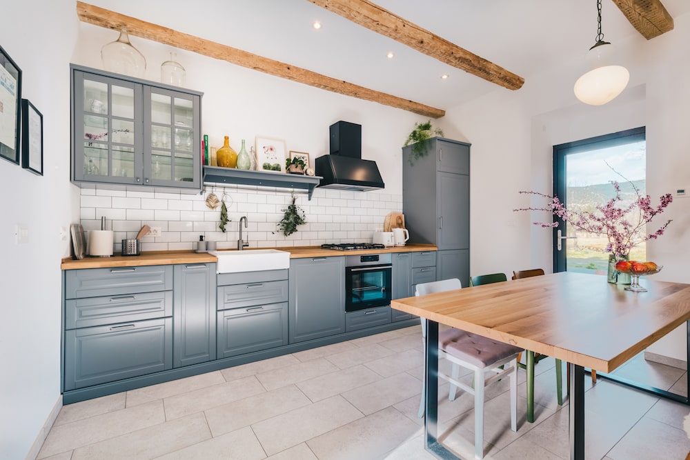 - U betreedt het huis via een karakteristieke lobby die leidt naar de rustiek moderne keuken met een eettafel en een aparte loungeruimte.