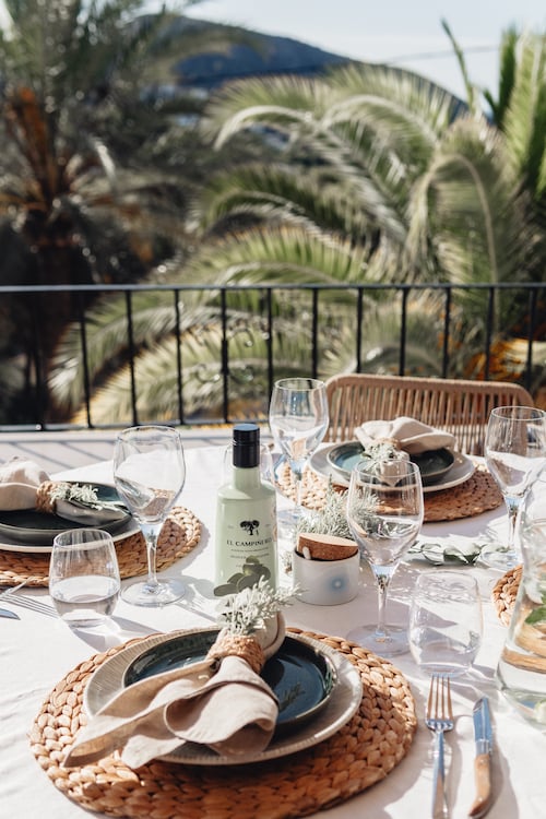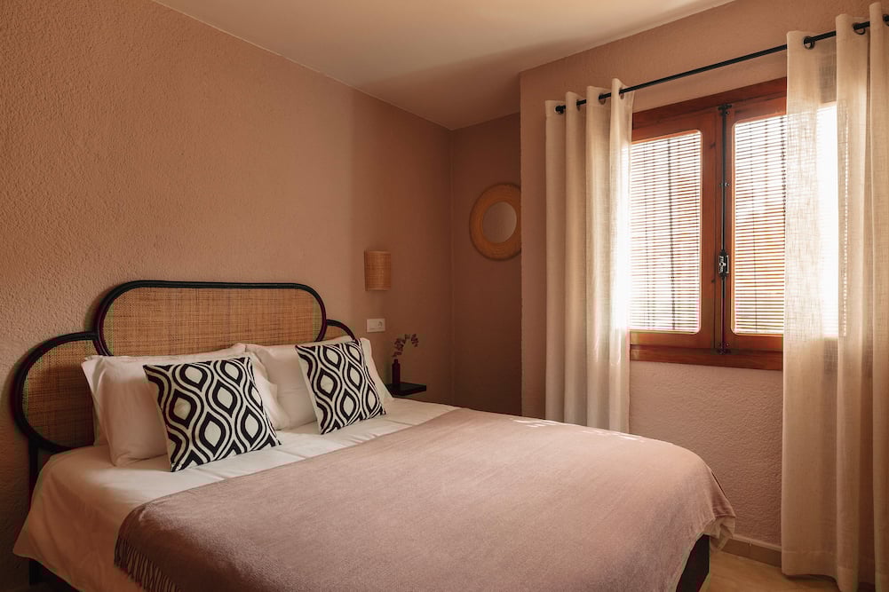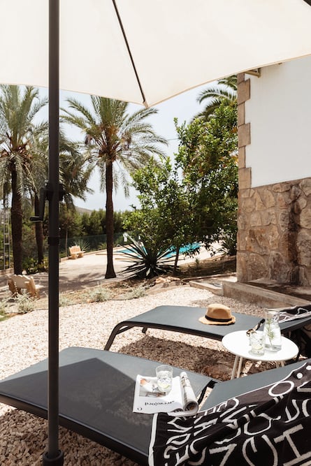 - Mediterrane tuin met ligbedden. De tuin is niet afgesloten van de rest van de huizen, maar voelt vrij privé aan.