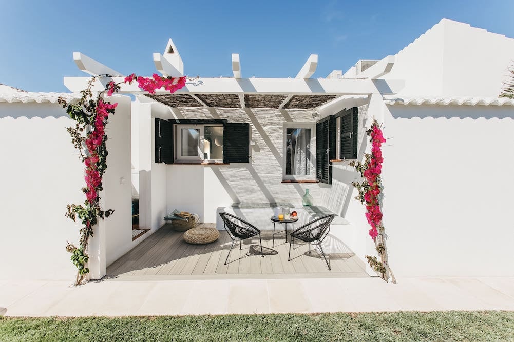 - Een overdekt terras/veranda voor het huis met een eettafel en lounge stoeltjes