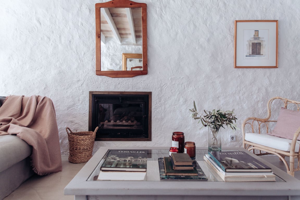 - Verderop is de ruime, gemeenschappelijke living met comfortabele banken, lounge stoelen, tv (Chromecast en Netflix), een open haard en openslaande deuren naar het zwembad.