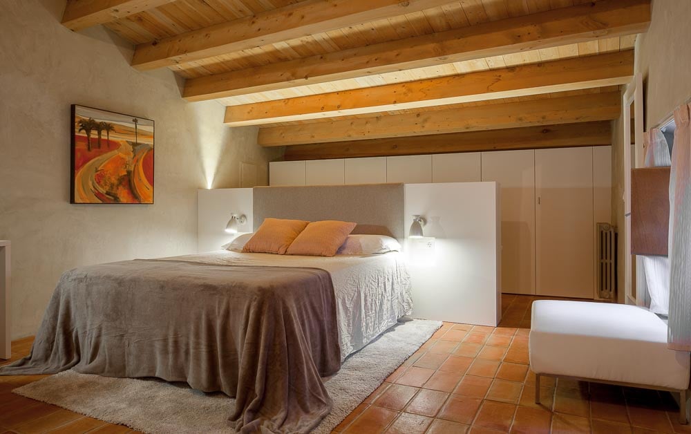 - slaapkamer met ensuite badkamer, sfeervol gebouwd achter het bed