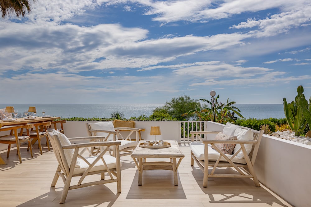 - Twee ruime slaapkamers met tweepersoonsbedden en openslaande deuren naar een Frans balkon met zeezicht.