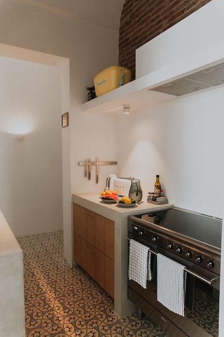 Via de lichte hal met hoge plafonds komt u binnen. Aan het einde bevindt zich de volledig uitgeruste keuken met oven, inductiekookplaat, vaatwasser en espressomachine. De keuken loopt over in de eetruimte met een houten tafel voor zes personen en de gezellige woonkamer met een ruime bank.
