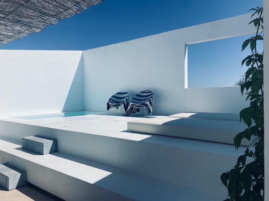 - Op het half-overdekte buitenterras (36m2) staat een picknick tafel voor 8 personen, een Weber barbecue en hier ligt een plunge pool (1,50x3m / 1,50 diep)