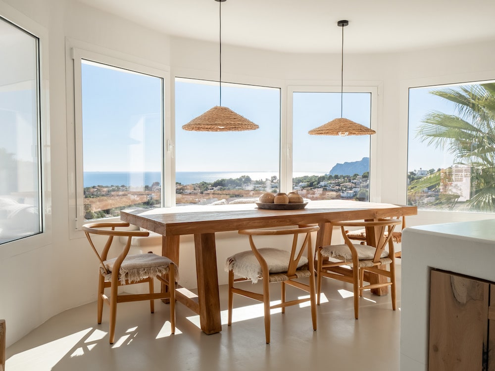 - Bij het raam met prachtig zeezicht staat een eettafel voor 8 personen