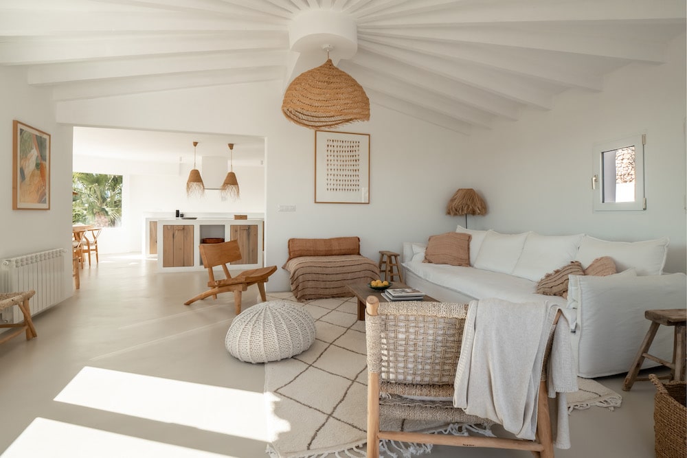 - imposante grote eettafel met sfeervolle rieten lampen