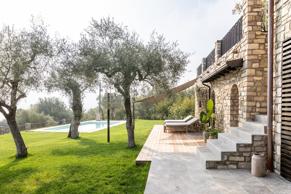 U geniet bij Casa di Campo van een grote tuin, met talloze loungeplekken, een verwarmd zwembad en een schitterend uitzicht over de groene omgeving en het diepblauwe water van het Gardameer.