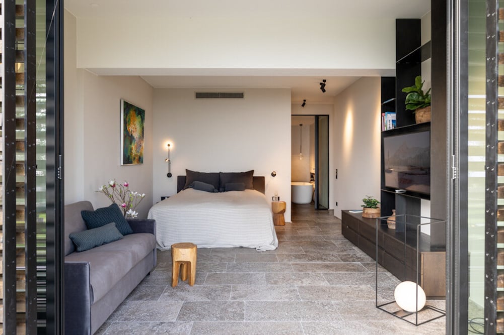 - Ook vanuit de slaapkamers heeft u directe toegang tot de tuin. Hier vindt verschillende zitplekken en het grote gazon.