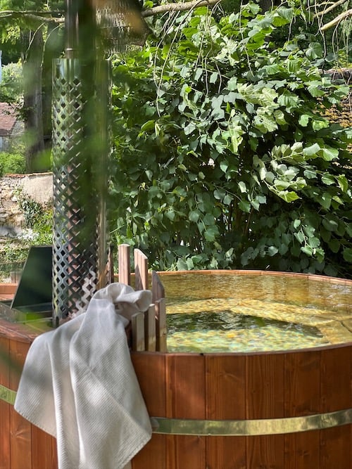 - Er is een 6-persoons houtgestookte Nordic tub.