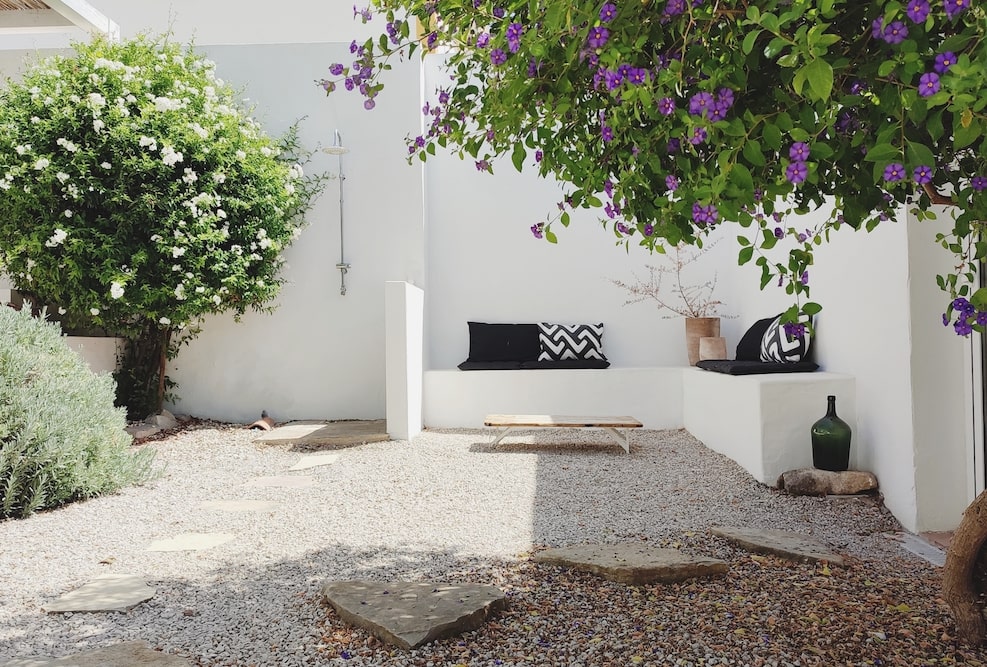 - Verschillende zitgedeeltes, zoals: ingemetselde banken met comfortabele zitkussens, lounge stoelen en ligbedden.