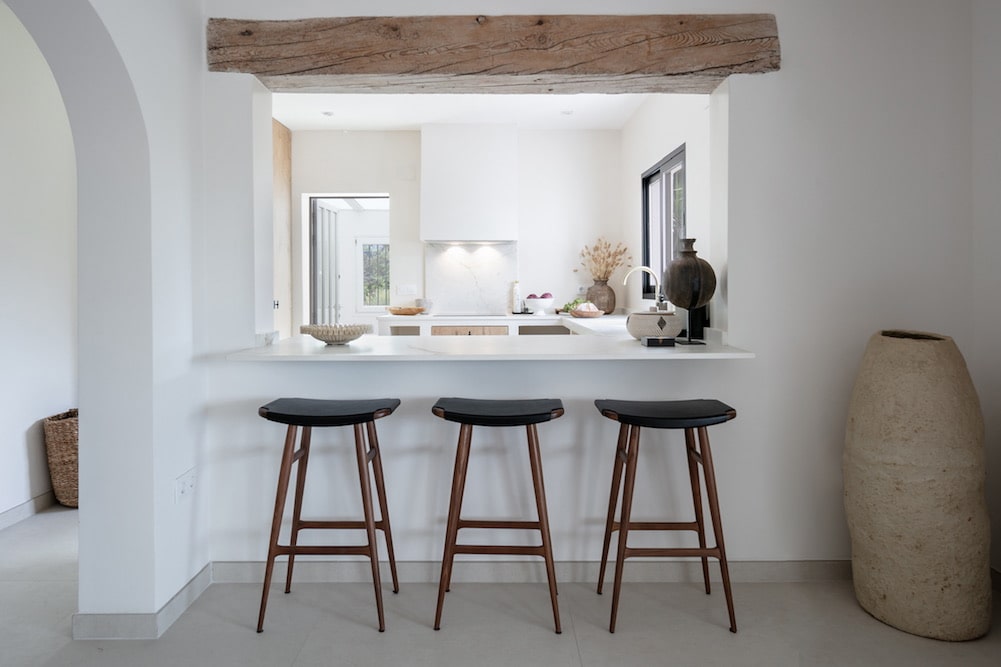 - Een open keuken met een zit/eetbar. Buiten de zomermaanden staat er ook een kleine eettafel zodat u ook binnen gemakkelijk kunt eten aan de tafel.