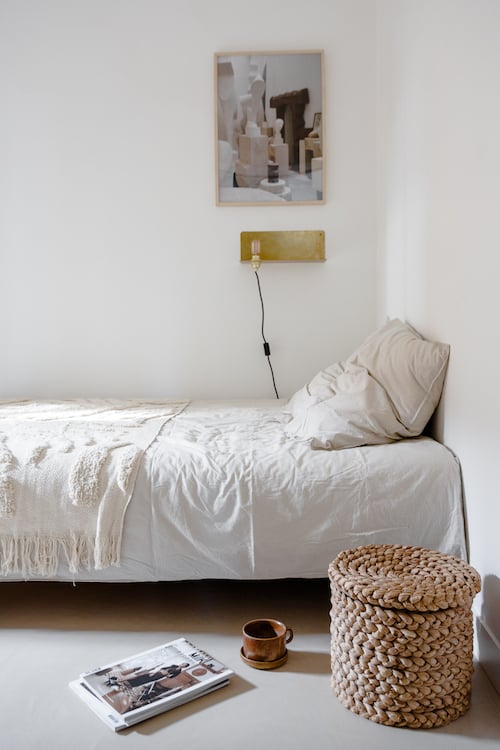- 1 Slaapkamer op de eerste verdieping, met tweepersoonsbed (160 x 200), kleding opbergruimte en stonewashed bedlinnen.