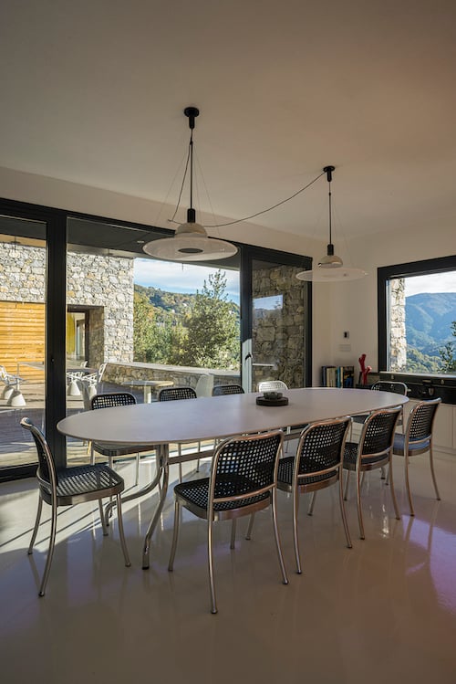 Casa Rufo is een moderne designvilla voor 8 personen in de heuvels van Ligurië, met een infinity pool en vier slaapkamers met ensuite badkamers. De villa combineert hedendaagse architectuur, witte minimalistische interieurs en internationaal designmeubilair.