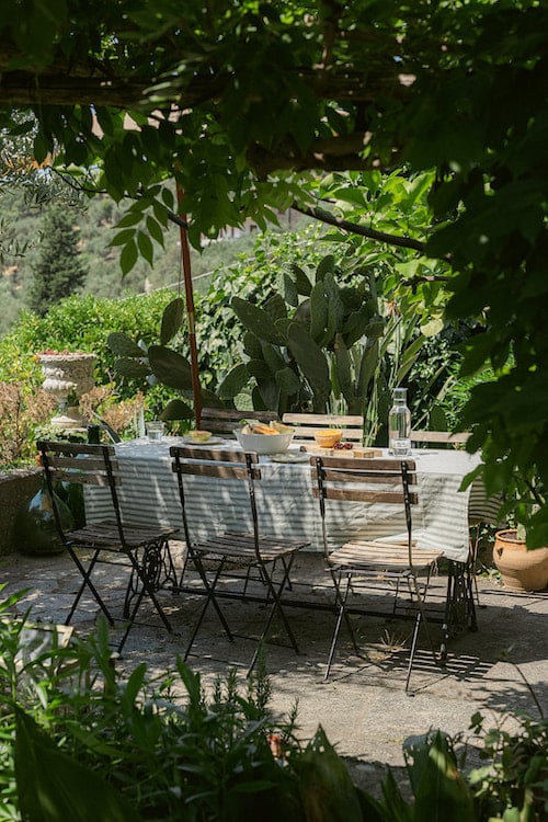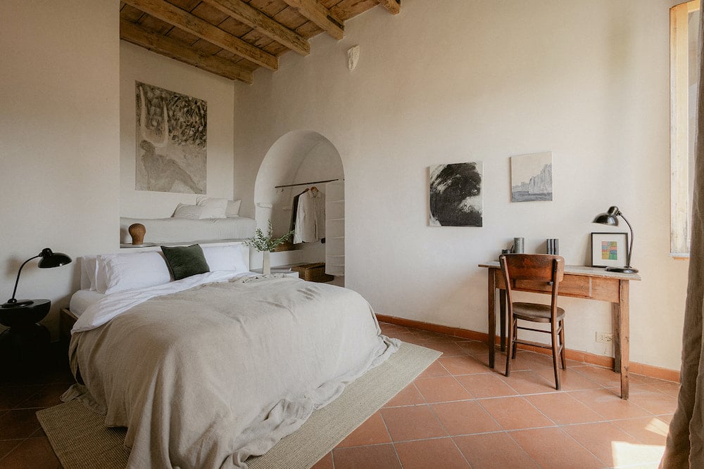 Binnen voelt Casa Tunin als een ruim en artistiek familiehuis. De grote keuken met marmeren werkblad en open haard vormt het hart van Casa Tunin, met plaats voor lange maaltijden aan de houten tafel en uitzicht op zee. Er is een lichte woonkamer met designbank en open haard, drie serene slaapkamers, een atelier en een kleine bibliotheek. Alles ademt rust en aandacht: ingetogen kleuren, handgemaakte meubels, kunst en linnen gordijnen die zacht bewegen in de bries. Vanuit de keuken loopt u de begroeide tuin in met terrassen tussen citrusbomen en kruidenplanten. Hier kunt u ontbijten in de zon of genieten van lange avonden onder de sterren. Op de eerste verdieping biedt de loggia een prachtig uitzicht over het dorp, de heuvels en de zee.