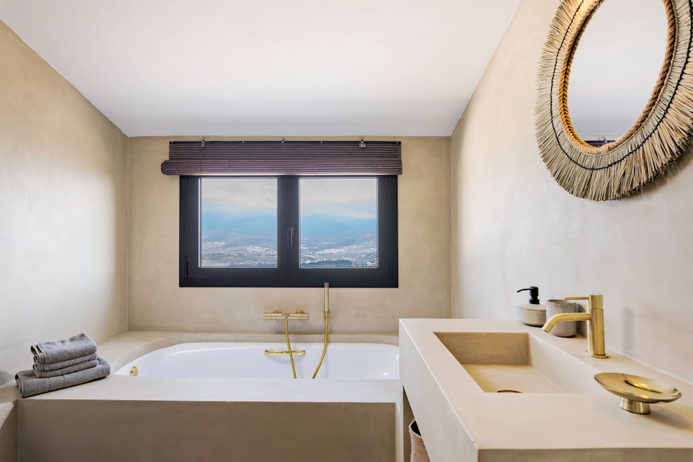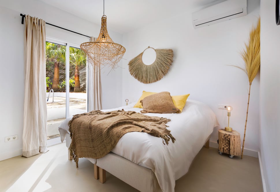 - Elke slaapkamer heeft een ensuite badkamer met inloopdouche, toilet en wastafel en afgewerkt met goud geborsteld messing kraanwerk en microcement. Rolluiken maken de ruimtes fijn donker, zodat u lang van uw nachtrust kunt genieten. Natuuurlijk ontbreekt ook airconditioning niet (warm/koud)