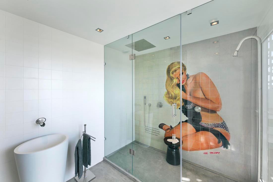 - Badkamer met een regendouche, wastafel en vloerverwarming