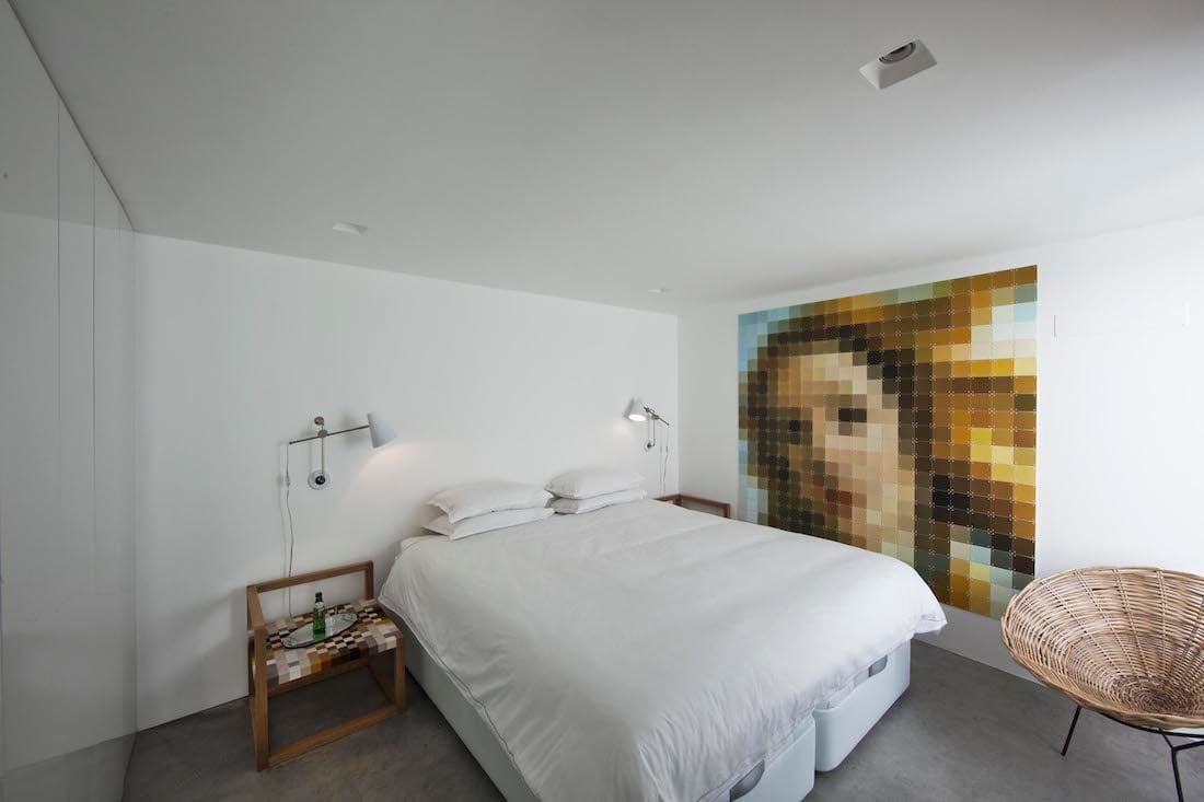 - Slaapkamer met een 2-persoonsbed (220 x 180 cm) en openslaande deuren