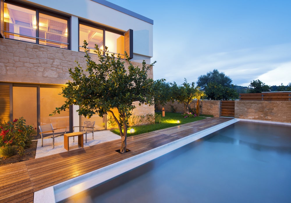 De villa’s (varierend in grootte van 190 - 215 m2) zijn allen verdeeld over twee verdiepingen en beschikken over drie slaapkamers voor in totaal 7 personen, twee badkamers met een hydromassage douche of een jacuzzi bad. De open leefruimte beneden is uitgerust met een moderne keuken, een eettafel en een lounge met een comfortabele sofa, televisie en een houtkachel. Grote schuifdeuren gaan naar buiten. Buiten in uw tuin met sinaasappel- en olijfbomen vindt u diverse plekjes om te ontspannen, eten en te spelen. Rondom het zwembad ligt een houten zonnedek met ligstoelen en een zitje en in de schaduw vindt u een comfortabele loungeset.