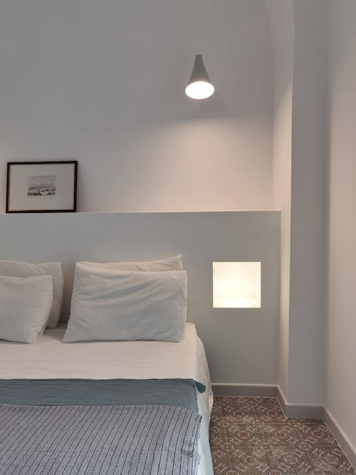- Twee slaapkamers, een met een tweepersoonsbed (160x200cm) en een kleinere slaapkamer met een Franse bed (140x 200cm). Deze slaapkamer heeft geen buitenraam, alleen een opening boven de deur die opent naar de woonkamer. De slaapkamers hebben plafondventilatoren.