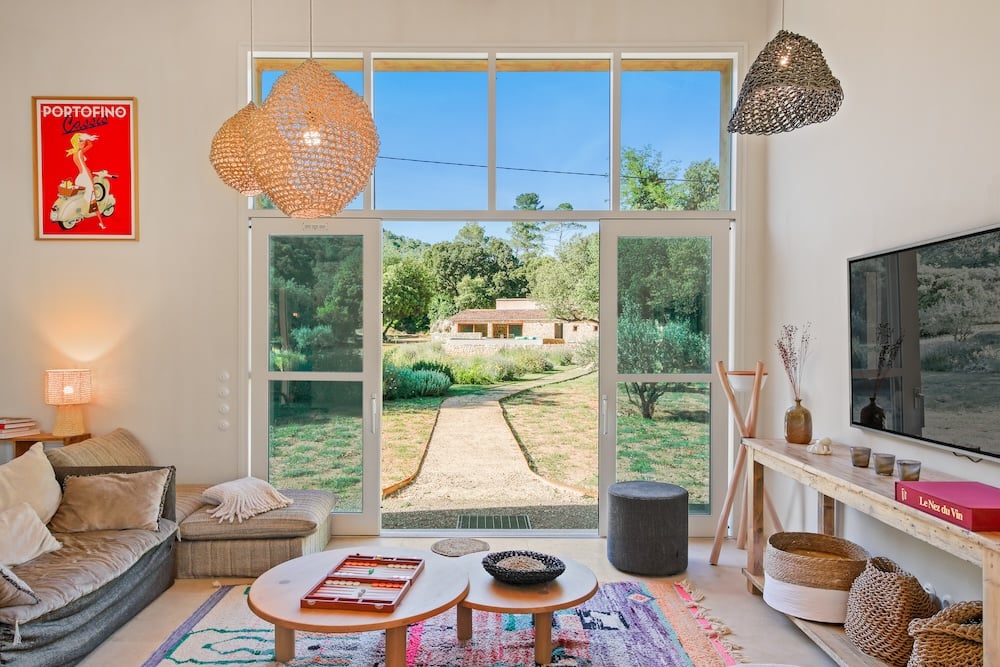 Buiten draait alles om het Provençaalse leven. Het infinity zwembad kijkt uit over de wijnranken en glooiende heuvels, terwijl het poolhouse met zomerkeuken en bar dé plek is voor lange middagen en avonden. Er is een petanquebaan, ruimte om te loungen en een grote tuin waar u altijd een rustig plekje vindt, in de zon of juist onder de bomen.