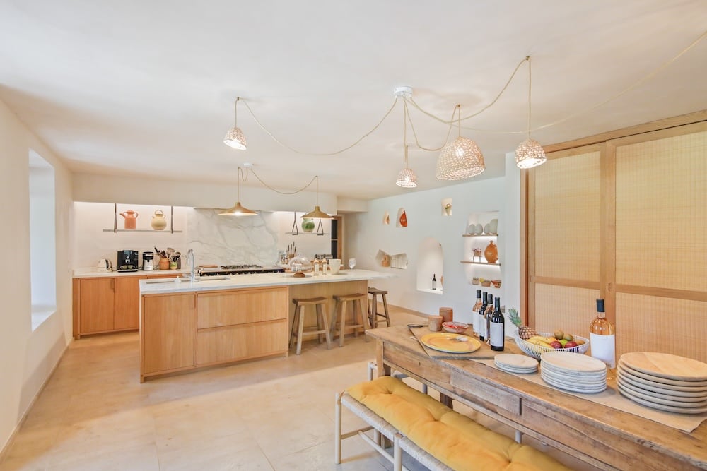 Het domein bestaat uit een hoofdgebouw en een bijgebouw, samen goed voor 8 slaapkamers, elk met een eigen badkamer. Binnen heerst een verfijnde, ingetogen sfeer: ruwe natuurstenen muren, authentieke details en zachte aardetinten worden gecombineerd met hedendaagse kunst en moderne schilderijen. De grote leefruimtes nodigen uit tot samen zijn - met een royale keuken, een lange eettafel voor gezamenlijke diners en een lichte lounge die uitkomt op het terras en het zwembad.