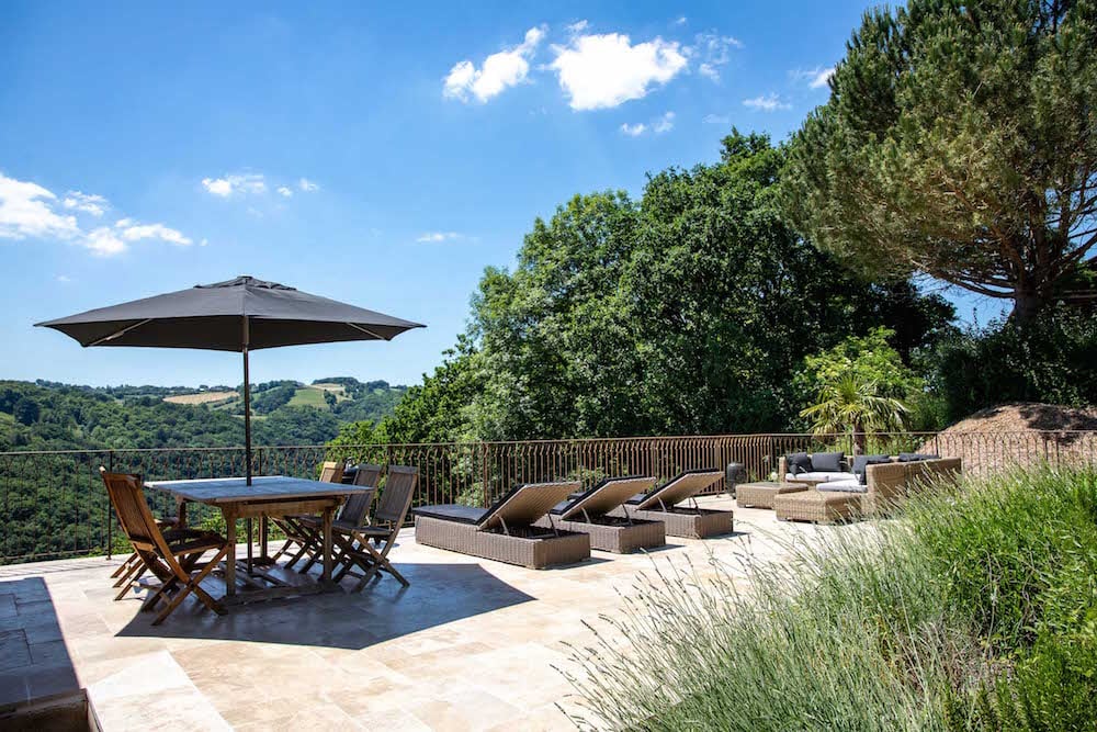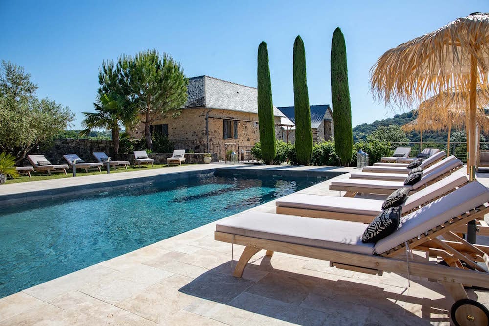 - Een verwarmd en beveiligd zwembad (12x 6m) dat wordt omringd door een groot zonneterras met ligstoelen, lounge bedden, parasols en een buitendouche. Hier bevindt zich tevens een (pool) bar, barbecue en diverse zitjes.