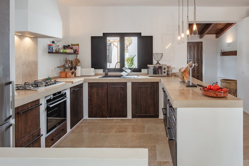 De villa ademt elegantie: binnen zorgen natuursteen, hout en linnen voor een warme, rustgevende sfeer. De inrichting is modern maar met een zuidelijke ziel – zorgvuldig gekozen details, zachte kleuren en comfortabele meubels die uitnodigen om te ontspannen. In de open living komt alles samen: een handgemaakte keuken met houten deuren en travertin werkbladen, een ruime eettafel en een zithoek met open haard. Er zijn drie slaapkamers, waarvan twee met een eigen terras, en een vierde slaapkamer in de naastgelegen dependance – perfect voor gasten die wat extra privacy wensen. Alle kamers zijn licht, ruim en uitgerust met airconditioning, ventilatoren en heerlijke bedden.