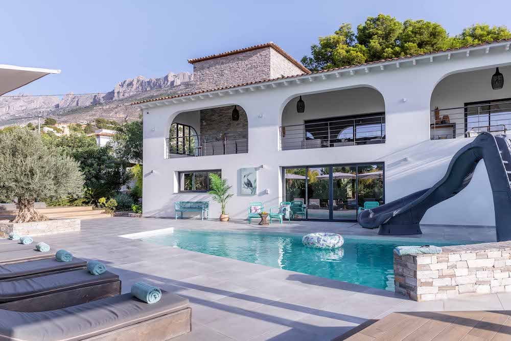 - Het zwembad (10 x 5 meter, 1.80 diep) kan worden verwarmd op verzoek (ook kunt u het zwembad afdekken). Er is een waterglijbaan en een waterval, veel speelplezier voor de kinderen.