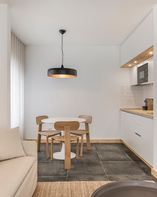 - Open keuken met eettafel voor 3 personen. De keuken is uitgerust met: Nespresso machine, waterkoker, koelkast, vriezer, vaatwasser, magnetron, inductie kookplaat, broodrooster en verdere kookbenodigdheden.