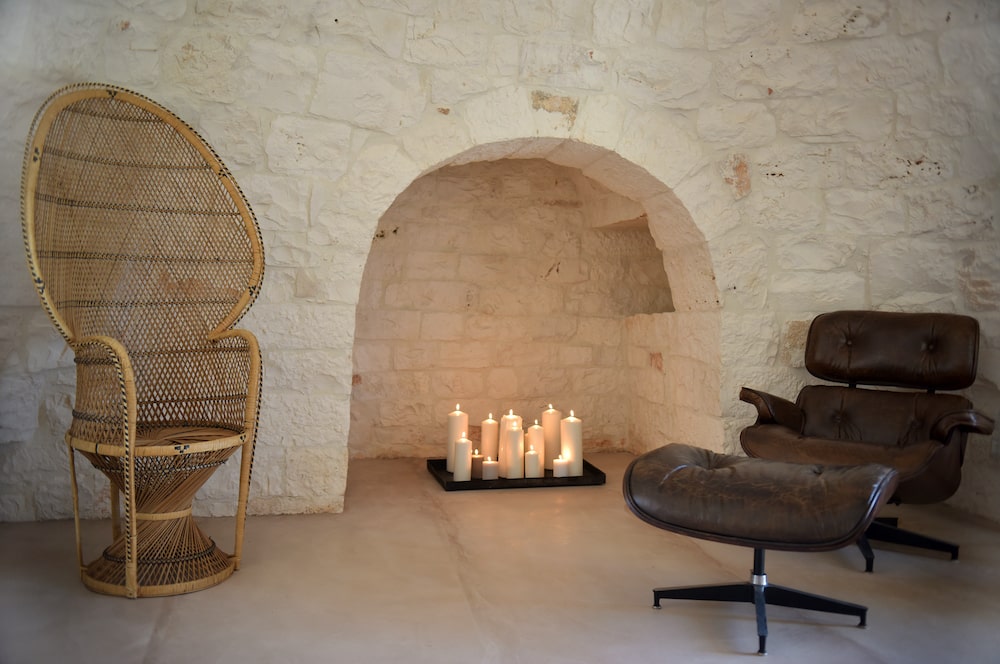 De gezamenlijke leefruimtes hebben hun authentieke charmes behouden met ruwe witte stenen muren en gewelfde plafonds en hebben een stijlvolle twist gekregen met moderne meubels, design stukken, gerecyclede elementen en hedendaagse kunst.
