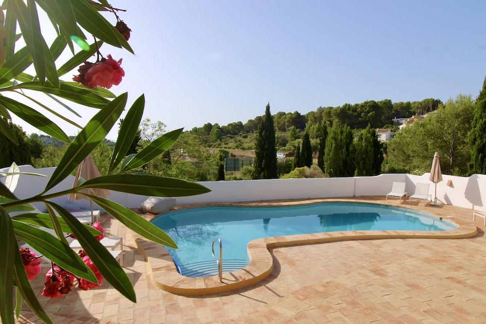 Het huis ligt op een grond van 2400 m², rustig gelegen op een doodlopende weg, in een groen zone, met zicht op zee en de mandarijnen boomgaard. Hierachter ligt de weg die u naar het strand brengt.